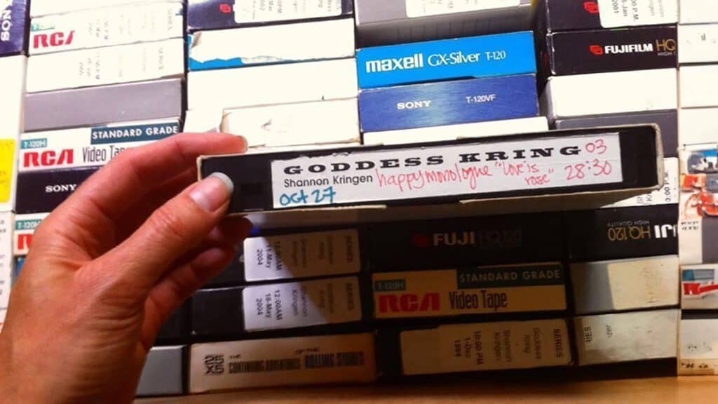 Of all the personalities on local public access, though, perhaps one of the most memorable was Shannon Kringen — the colorful pagan woman whose Goddess Kring show featured stream-of-consciousness monologues combined with naked performance art. Kringen recently announced that she had uncovered a large cache of VHS tapes containing all episodes of her show, generating some renewed interest in this bygone era of TV. The discovery of these artifacts led me to reach out to her to learn more about her interesting story.