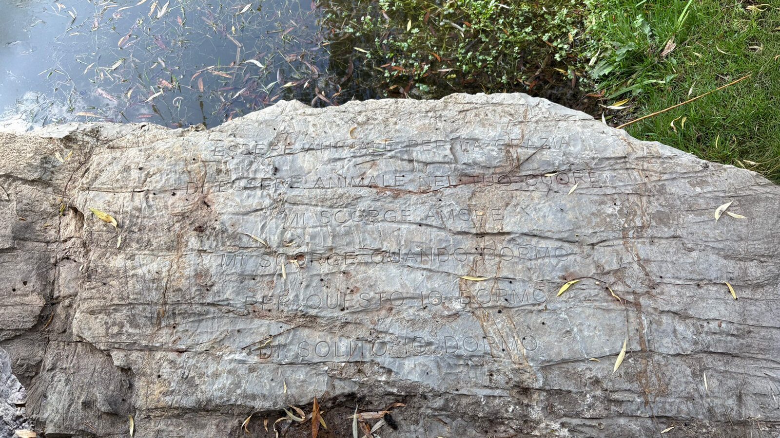 Per Ama is a manmade pond surrounded by helichrysum, a fragrant aromatic shrub that’s a close relative to the sunflower family. The scent is used in perfumes and aromatic candles sold at the vineyard’s gift shop. But out in the open air, the plant transforms the environment before you even arrive at Holzer’s piece. The artist’s signature use of text appears in this art offering to the land through poems engraved onto stones. One is placed near the shore of the pond. The other is carefully hidden in the environment, within view of the water and near where wild mint flourishes.