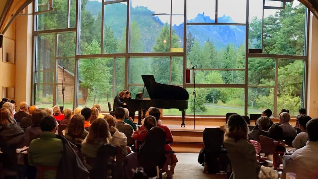 The accommodations at Sleeping Lady harmonize with the natural surroundings, featuring cozy log cabins with warm interiors. The resort also boasts a variety of amenities including a rejuvenating spa, a heated outdoor pool and hot tub, beautiful gardens, and even a capacious performing arts venue. It’s an ideal base for both relaxation and exploration.