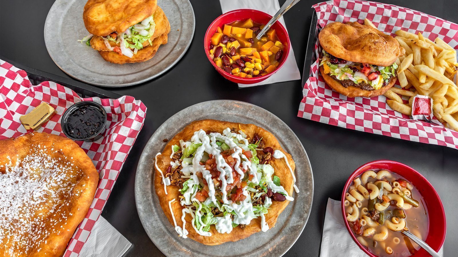 On the other side of the state, Indigenous Eats, which is owned by Yakama Nation member Jenny Slagle and her husband, Andrew, serves Native American-inspired food at two locations in Spokane. Enjoy dishes like three sisters soup made with squash, beans, and corn, and a burger served between frybread and topped with huckleberry sauce.