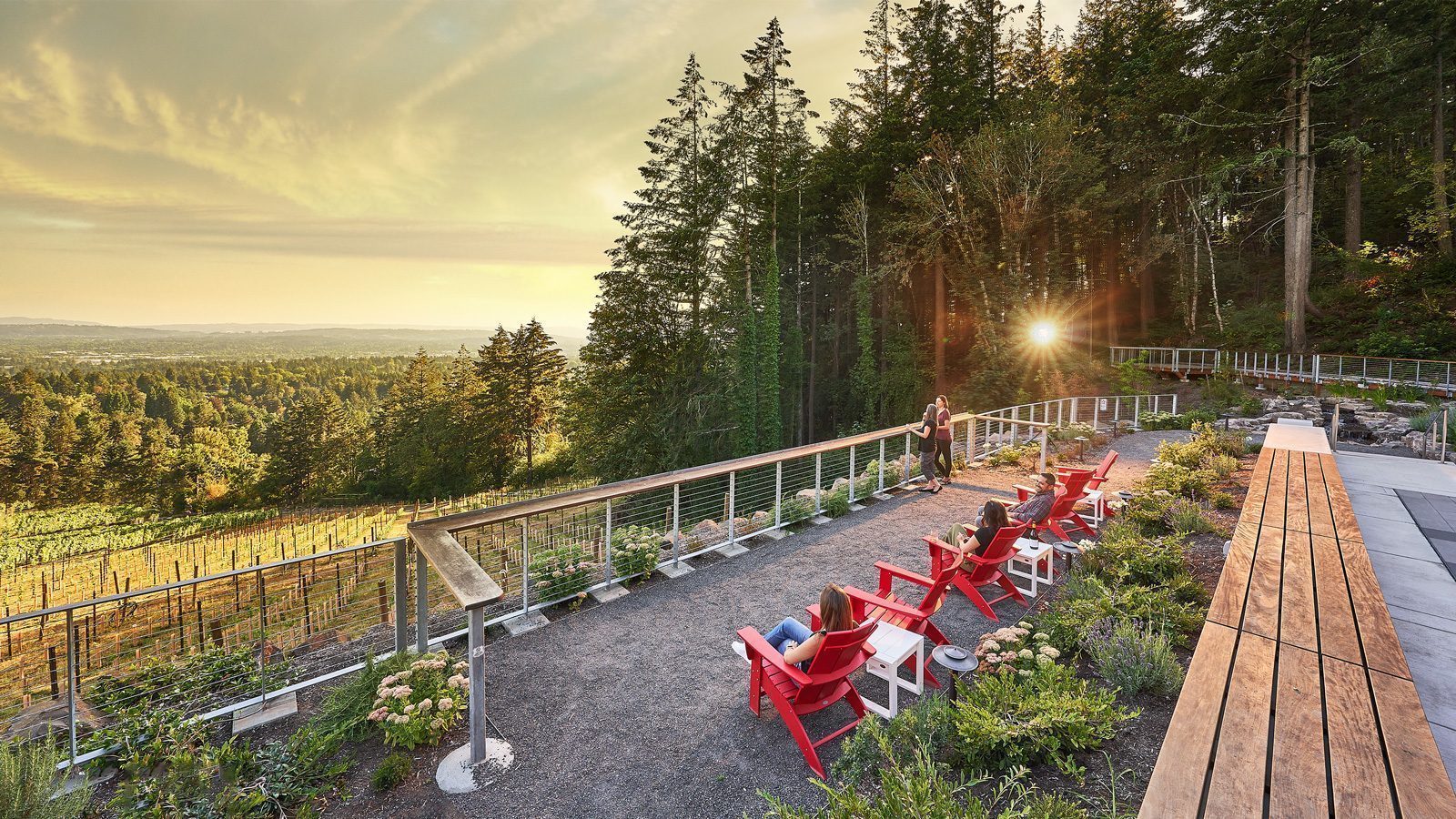 If you’re after some bubbles and a peaceful location perched on a hill, head to Corollary. The striking red-orange tasting room sits atop a hill in the Eola-Amity Hills AVA and just opened in May. Sample your way through Corollary’s range of sparkling wines, including blanc de blancs and carbonic roses, which are intentionally crafted to echo the ecosystem of the Willamette Valley.